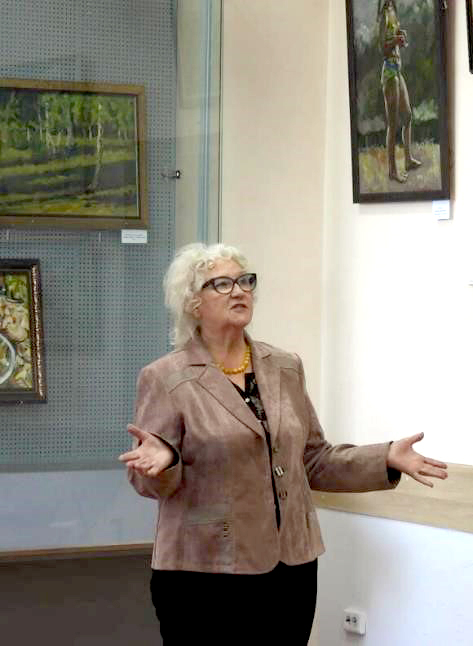 Елена Александровна поблагодарила руководство Байкальского музея за прекрасную выставку работ ее мужа. Также сказала, что Байкальский музей – ее любимый музей и она всегда привозит сюда своих друзей, гостей и близких. Ученый секретарь Музея Ирина Анатольевна Липко, кандидат биологических наук подарила Елене Александровне цветы, а Ольга Тимофеевна Русинек книгу о Глебе Юрьевиче Верещагине.