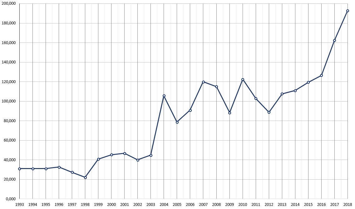 Ежегодно Байкальский музей посещают около 150 тыс. человек, проводится более 4000 лекций и экскурсий. Байкальский музей посетили около 2 млн. человек (Рис. 1). В последние годы увеличивается тенденция посещения музея большими организованными группами, до 250- 280 человек одновременно. Общая тенденция возрастания больших групп посетителей является дополнительным аргументом в пользу расширения общей площади и реконструкции Байкальского музея.