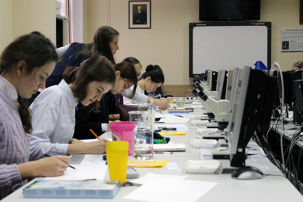 Участники конкурса научного рисунка во время работы.