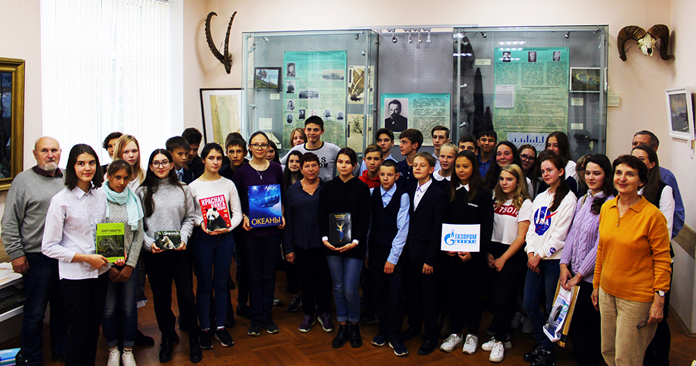 Школьники на выставке, посвященной 140-летию профессора Дорогостайского.