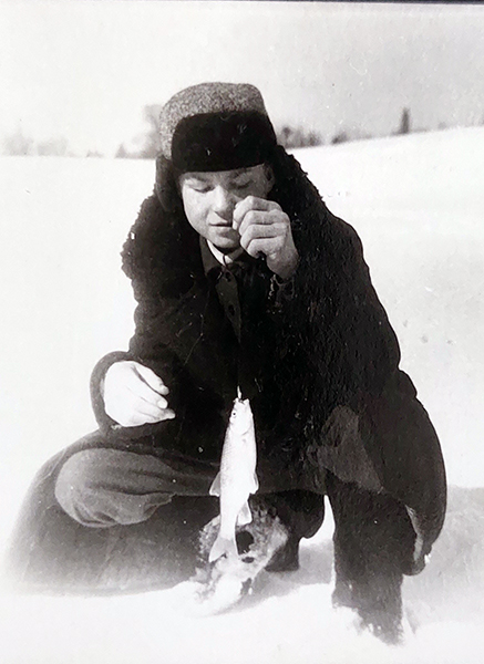 Василий Смирнов на рыбалке на реке Кокшага в марте 1957 г. выловил головля.