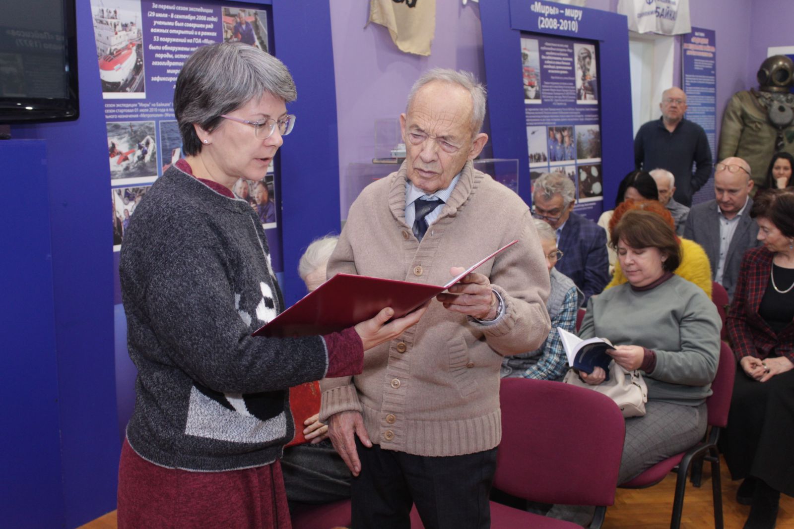 В завершении мероприятия состоялась презентация книги в серии «Исследователи Байкала» «МИХАИЛ НИКОЛАЕВИЧ ШИМАРАЕВ: ЛЮБИТЬ И ИЗУЧАТЬ БАЙКАЛ – БОЛЬШОЕ СЧАСТЬЕ!». После этого все присутствующие участвовали в открытии выставки о нашем современнике, ученом-байкаловеде М.Н. Шимараеве. На выставке представлены фотографии из разных периодов жизни и научной деятельности ученого, виды Байкала и Листвянки из фотоархива Байкальского музея, документы, награды, редкие книги, научные публикации и гидрологические приборы. Выставка продлится до конца января 2024 г.