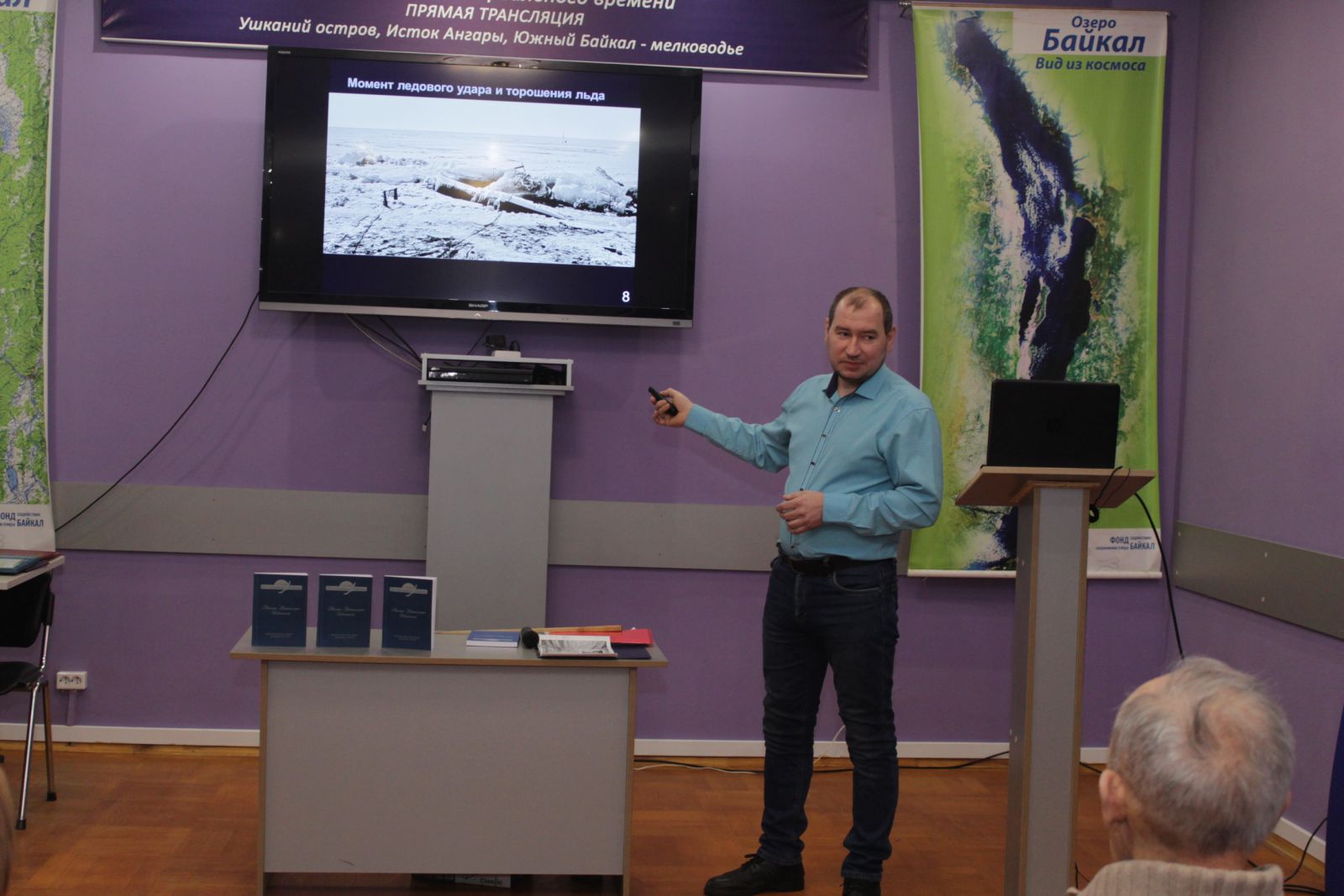 И.А. Асламов представляет результаты работы сотрудников лаборатории гидрологии и гидрофизики ЛИНа по изучению ледовых явлений на Байкале.