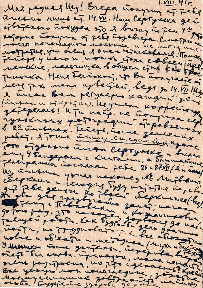 Дмитрий Николаевич пишет ежедневно, порой отправляя по несколько писем или открыток в день, что позволяет считать семейную переписку «летописью» начала войны. Откроем некоторые страницы этой военной, блокадной летописи…