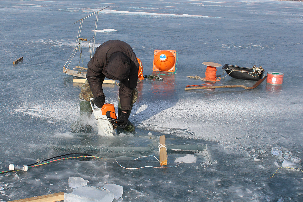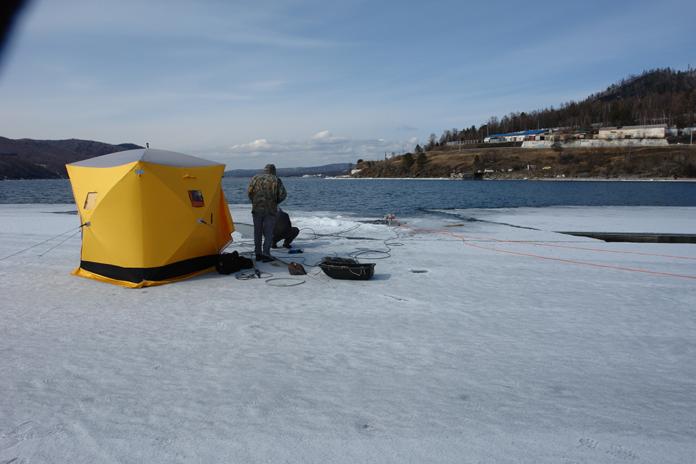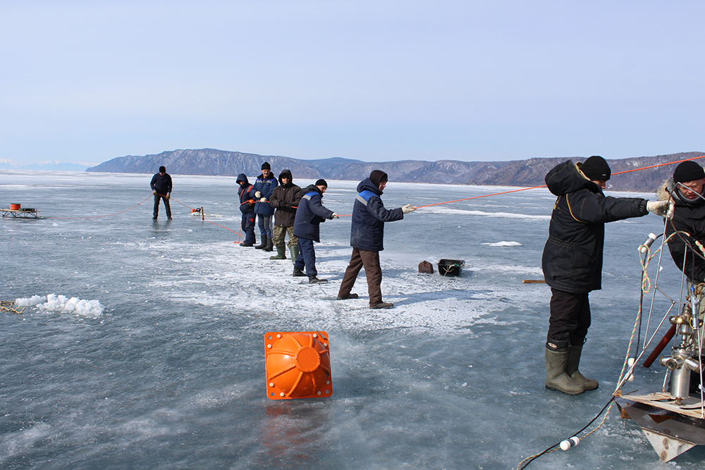 Работы со льда в заливе Листвяничном