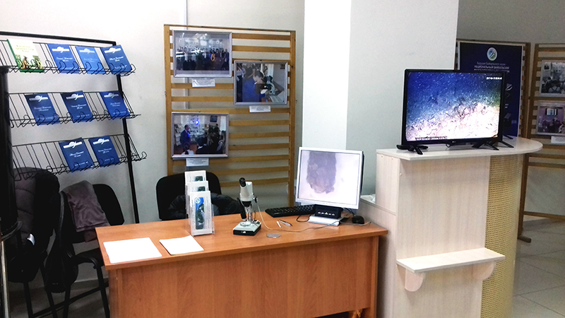 22-23 ноября в Библиотеке им. В.Г. Распутина Иркутского Государственного Университета в рамках проведения Всероссийского Фестиваля науки «Наука 0+», организованного при участии Правительства Иркутской области, Байкальский музей представил выездную экспозицию с демонстрацией проектов по образовательной и просветительской деятельности Байкальского музея: «Байкал в режиме реального времени», «Живой мир Байкала под микроскопом». Посетителей ознакомили с результатами работы с детьми – тематическими лекциями, конкурсами творческих работ. Гости фестиваля могли ознакомиться с серией из 8 книг «Исследователи Байкала», подготовленных сотрудниками Байкальского музея совместно с коллегами из других институтов. Издания были приурочены к межинститутским семинарам, посвященным жизни и научной деятельности сибирских ученых.